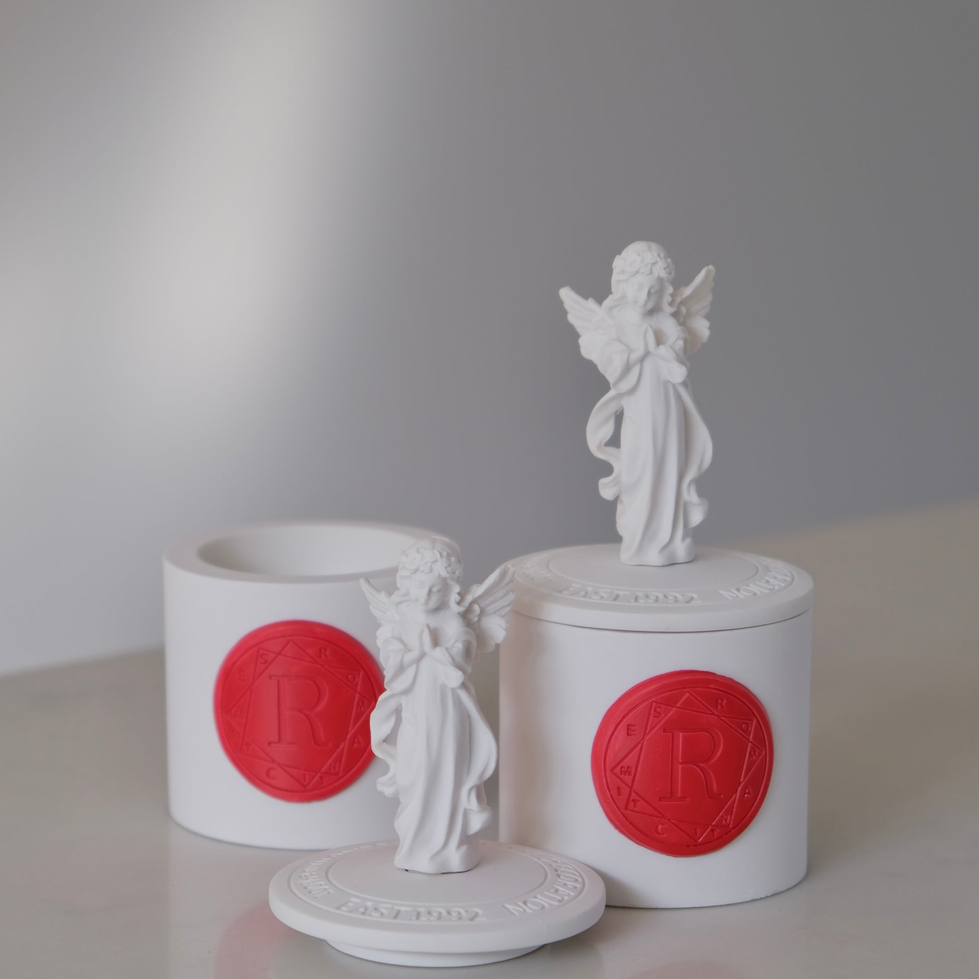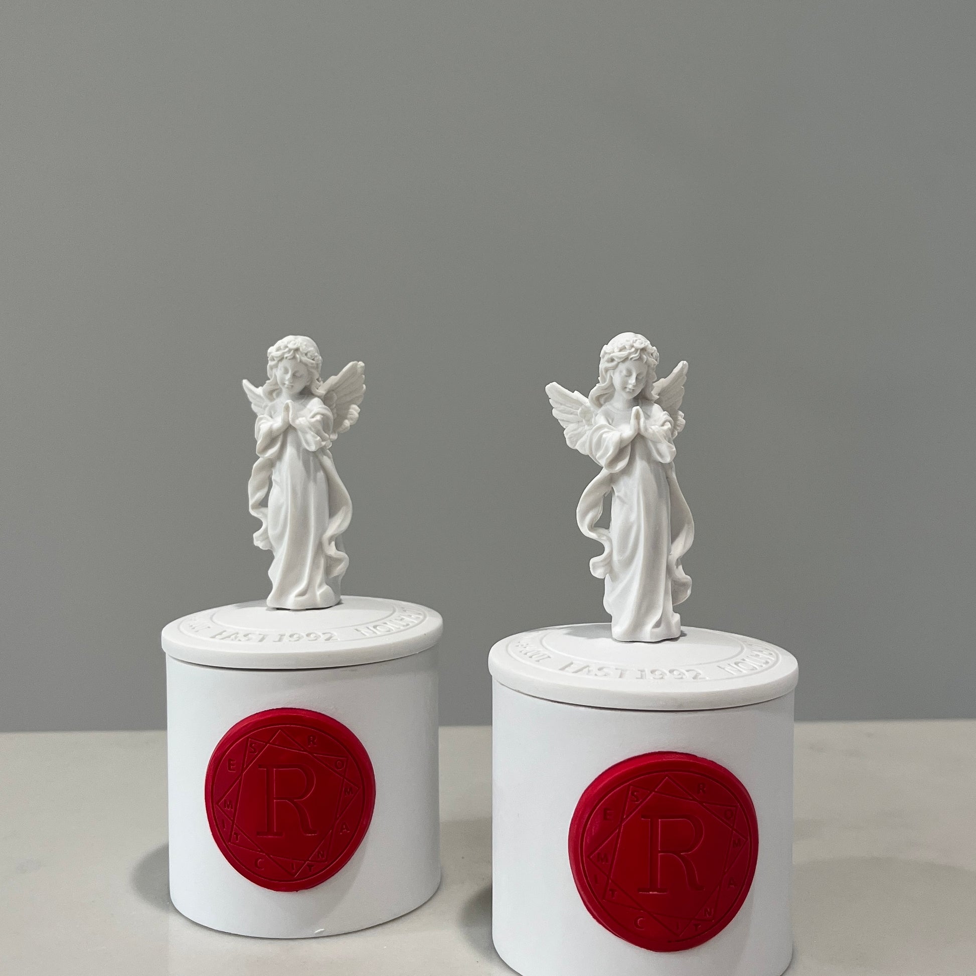 Indulge in the divine scent of our artisanal, soy-based Angel Scented Candle. This exquisite candle comes with a stunning plaster holder, making it the ideal addition to any home.